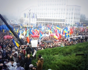"Українські патріоти, українська європейська площа вже заповнена, але наша колона ще іде Хрещатиком люди підходять і підходять. Прошу вас ставати щільніше"- наголосив він