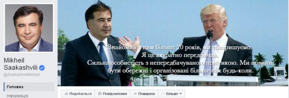 Саакашвілі розмістив у себе в Facebook обкладинку з американським політиком.
