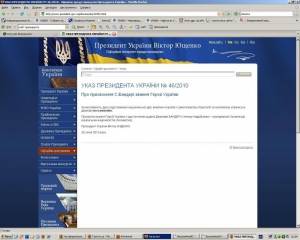 Як повідомляється на сайті, відповідний указ був підписаний 20 січня 2010 року.