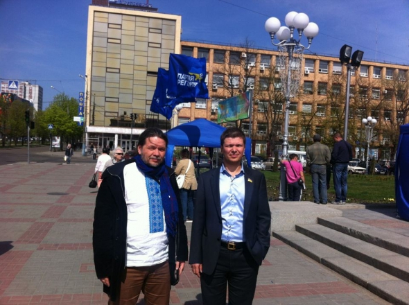 Ємець разом із колегою Олександром Бригинцем поспілкувався з людьми-агітаторами ПР.