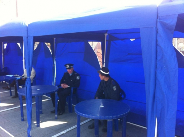 Соборну площу Черкас вночі заставили наметами Партії регіонів, а також тут збираються проводити дитяче свято, аби перешкодити мітингу опозиції "Вставай, Україно!".
