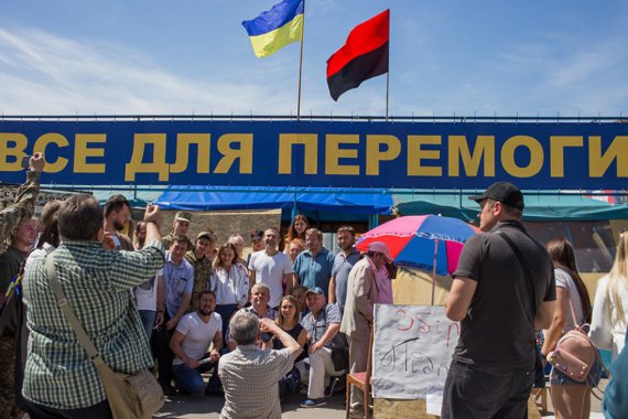 Лідер гурту "Океан Ельзи" Святослав Вакарчук приїхав до Харкова, де відвідав протестувальників і намет волонтерів.