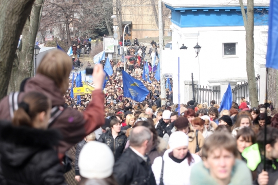 Сьогодні у всеукраїнській освітянській акції протесту в Києві, за оцінками вчительської профспілки, взяли участь 7 тисяч чоловік з 25 областей.