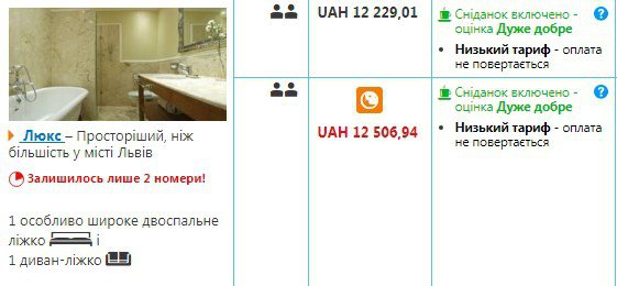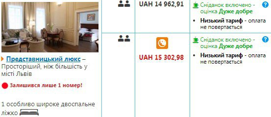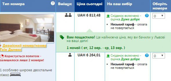 Так, зняти двомісний стандартний номер на добу з 12 на 13 вересня коштує 6264 грн.