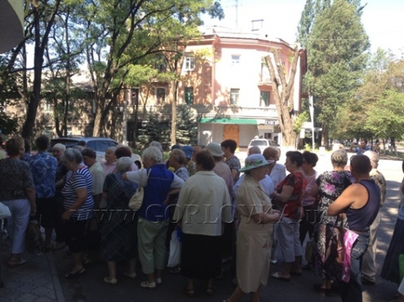 Сьогодні вранці, 20 липня, біля офісу Горлівської міської організації Партії регіонів утворилася довга черга: пенсіонери прийшли писати заяву на отримання матеріальної допомоги у розмірі 100 гривень від народного депутата України Миколи Янковського.