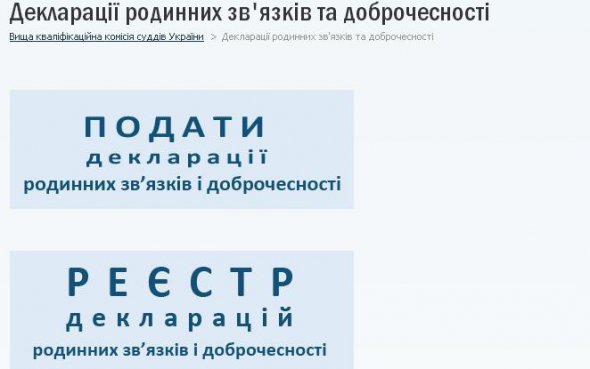 На сайті Вищої кваліфікаційної комісії суддів можна ознайомитися з деклараціями родинних зв'язків суддів і деклараціями доброчесності.