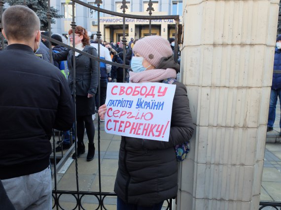 - Гадки не маю, чи вийду я до вас після оголошення вироку. Хочу подякувати усім. Це дуже надихає боротися далі й не ламатися. Яке б рішення не було, ми не програємо, - говорить громадський активіст Сергій СТЕРНЕНКО зранку 23 лютого біля Приморського суду Одеси. О 10.00 тут починається засідання, на якому йому виголосять вирок у справі про викрадення, напад з метою заволодіння чужим майном і зберігання зброї.