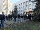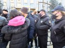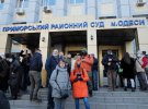 Із суду виходить дівчина з гучномовцем, просить учасників протесту розділитися.