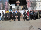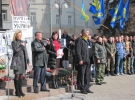 Губернатор Олійник прибув на площу із запізненням у супроводі радника та голови обласної ради. Привітавши жінок зі святом 8-го березня, одразу перейшов до звіту про роботу за тиждень.