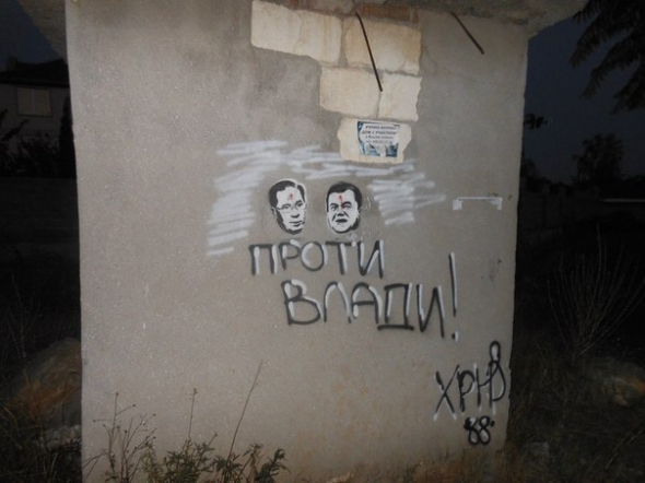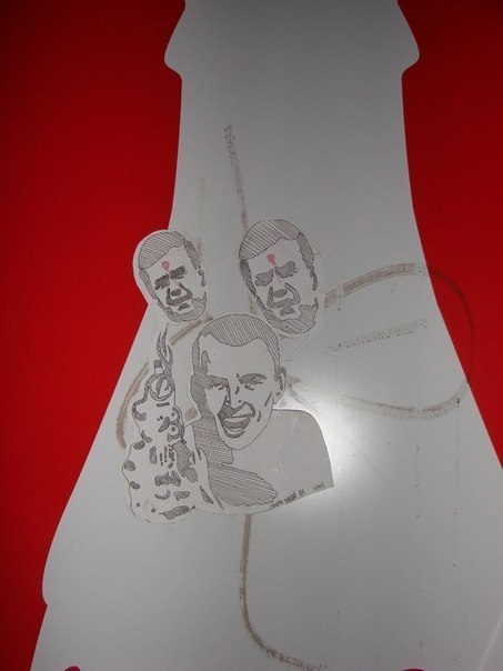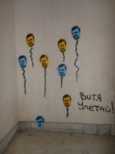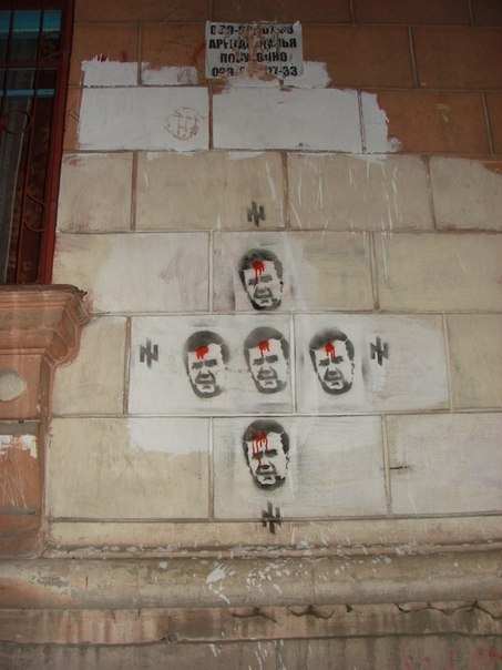 На стінах будинків Севастополя з'явилися зображення президента Віктора Януковича і прем'єр-міністра Миколи Азарова з червоною цяткою на лобі, яку в Індії називають бінді.