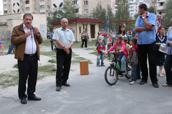 - А звідки у вас впевненість, що ви виконаєте те, що декларуєте? - вигукує чоловік в окулярах - сидить на лавці край майданчика.