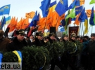 Попри сильний мороз захід зібрав кілька тисяч людей. Учасники мітингу тримали прапори партій "Наша Україна", Конгресу українських націоналістів, УНА-УНСО, ВО "Свобода", "За Україну!", державні синьо-жовті та повстанські червоно-чорні стяги.