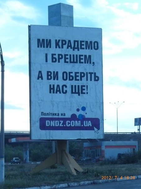 Раніше у місті вже з'являлись бігборди з написом "Ми крадемо і брешем, а ви оберіть нас ще!".