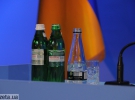 На сьогоднішній підсумковій прес-конференції президентові Вікторові Януковичу поставили на стіл дві пляшки української мінеральної води "Моршинська". Однак через 40 хвилин після початку виступу, коли глава держави захотів пити, він дістав з-під столу третю пляшечку, налив під столом з неї води, випив і поставив за "Моршинською".