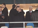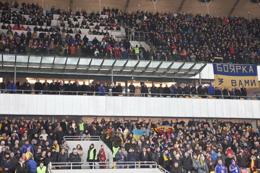 На 8-й хвилині поєдинку диктор оголосив про присутність на матчі Януковича. Вболівальники, а на гру прийшло 69 тисяч 720 глядачів (всього вміщує — 70 050), почали свистіти і кричати "фу". Дехто навіть показував великі пальці рук опущені донизу.