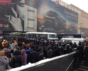 Вулиця Хрещатик заблокована силовиками і автобусами. "Беркут" в одну шеренгу стоїть із щитами. Люди кажуть, що деякі номери автобусів кримські.