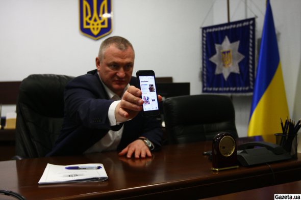 Зустрічаємося 5 лютого о 18:30 в його кабінеті в Міністерстві внутрішніх справ на вул. Академіка Богомольця в Києві. Глава Нацполіції затримався на півгодини через нараду. Попереджає, що незабаром має бути ще на одній нараді - в Адміністрації президента.