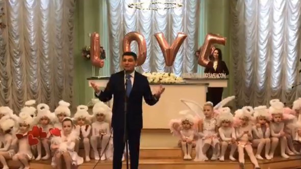 Прем'єра оточували діти у костюмах ангелів, кульки у вигляді сердечок і слово "Love".
