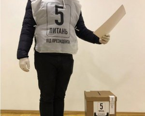 Волонтери будуть у спеціальних маніжках та з опломбованими урнами з надписом "5 питань від президента". Мають опитувати громадян після того, як ті проголосують.