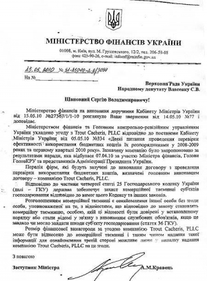 Про це йдеться у відповіді заступника міністра фінансів Андрія Кравця на запит депутата від БЮТ Сергія Власенка.