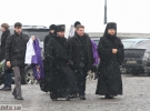 По черзі кладуть квіти до пам'ятника. Перші - Яценюк та Турчинов. Троє священиків УПЦ КП служать панихиду.