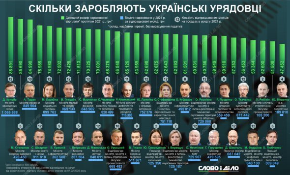 Серед міністрів найбільше заробив Дмитро Кулеба - 1 млн 66 тис. 688 грн. У середньому міністр закордонних справ отримував близько 88,9 тис. на місяць.