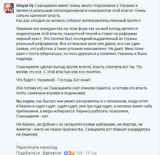 ЧИТАЙТЕ ТАКОЖ: Саакашвілі записав відеозвернення з приводу позбавлення його громадянства