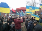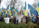 Люди,які зібралися біля пам'ятника Тарасу Шевченка "Зека на нари" та "Зека на йолку". Також вони вигукують "Україна понад усе", "Смерть ворогам" та "Банду геть". Про це повідомляє кореспондент Gazeta.ua.
