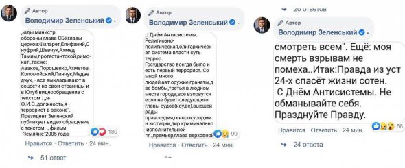 Також Зеленський у коментарях до свого посту продублював вимоги терориста.