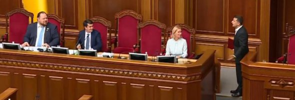 Після виступу президента Разумков заявив: "Оголошується перерва на 5 хвилин".