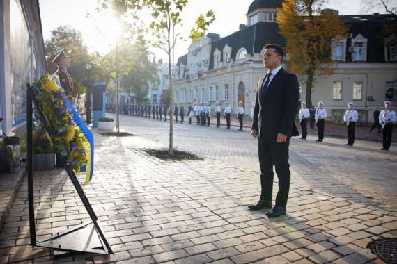 У День захисників і захисниць президент Володимир Зеленський взяв участь у церемонії вшанування пам'яті загиблих за Україну, що відбулася на Михайлівській площі в Києві.