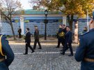 Оголосили хвилину мовчання, після чого військовий оркестр виконав Державний гімн України. Воїни почесної варти салютували шістьма залпами.