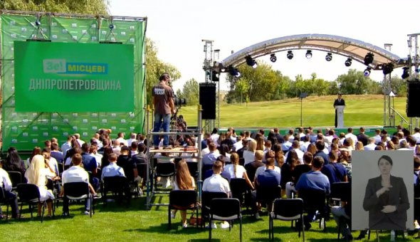 26 серпня у Дніпрі Зеленський презентував Стратегію розвитку Дніпропетровщини в яхт-клубі "Січ" та представив кандидатів на посаду міських голів Дніпра та Кривого Рогу від СН.
