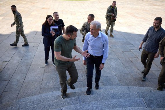 "Продовжую зустрічі з нашими партнерами. Вітаю у Києві прем'єр-міністра Норвегії Йонаса Гара Стьоре. Підтримка вашої країни важлива й цінна для нас, як і те, що сьогодні ви поруч з українцями", – написав Зеленський.