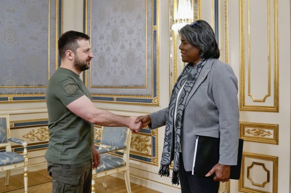 Президент України Володимир Зеленський зустрівся з представницею Сполучених Штатів Америки при Організації Об'єднаних Націй послом Ліндою Томас-Ґрінфілд.