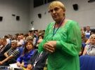 Кличко здивовано знизує плечима. З крісла у третьому ряду підіймається голова Спілки підприємців із Білої Церкви Людмила Яценко.