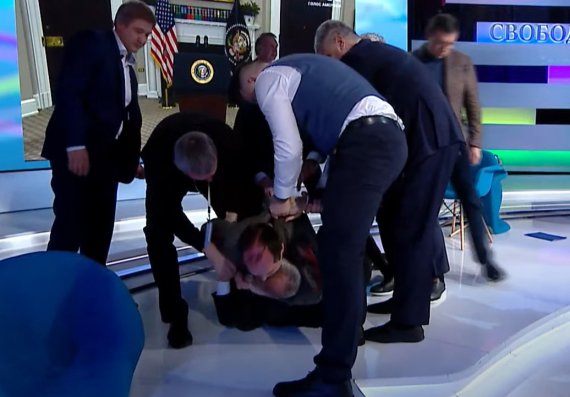 "Ми зараз всі єдині у захисті від російської агресії і не можемо дозволяти негідникам російським вести тут свою пропаганду. Це ганьба", - сказав журналіст.