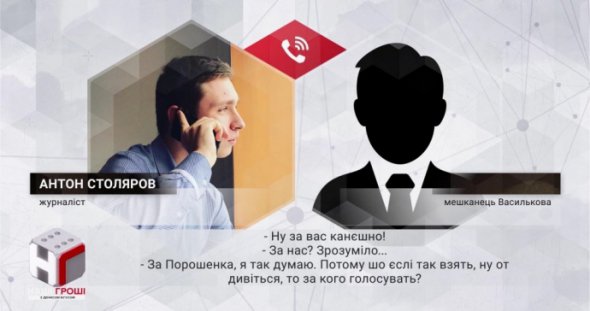 "На початку березня, коли гроші почали приходити, ми знову поспілкувалися з людьми по телефону від імені представників міськвиконкому. На питання, за кого вони голосуватимуть на виборах, більшість відповідали фразою "Як і домовлялися", що може свідчити про підкуп. А один житель Василькова озвучив також ім'я конкретного кандидата – за Петра Порошенка", – йдеться у розслідуванні.