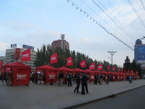 На зустріч з лідером "УДАРУ" в Донецьку на площу імені Леніна ввечері 23 вересня прийшли більше тисячі людей різного віку. Перед початком мітингу в два ряди біля сцени вишикувалися мажоритарники від "УДАРУ" та початківці партійні функціонери. Близько 20 охоронців стерегли сцену, не підпускаючи журналістів.