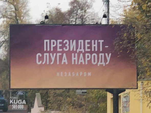 Біля Києва з'явилися білборди з написом "Президент - слуга народу. Незабаром". Відповідне фото опублікував у Facebook журналіст Володимир Кондрашов.