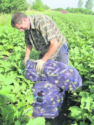 — Для ринку найвигідніше вирощувать баклажани, перець і помідори. Їх завжди купують. Наприклад, помідорів беруть трьох сортів, "сливки", прості круглі й Рожевий велетень. Останні купують спеціально на томат, бо сочниє, — каже. — На цій землі що хочеш виростити можна. Найскладніше баштан, бо кавуни часто маленькі родять. Кількість урожаю залежить від погоди. Так другий год нема картошки. Її жара спалює.