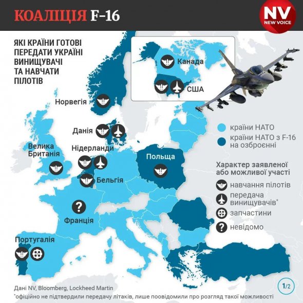 Постачання F-16 залежить від рішення США, бо вони є виробником. Президент Джо Байден підтримав рішення партнерів розпочати навчання пілотів.
