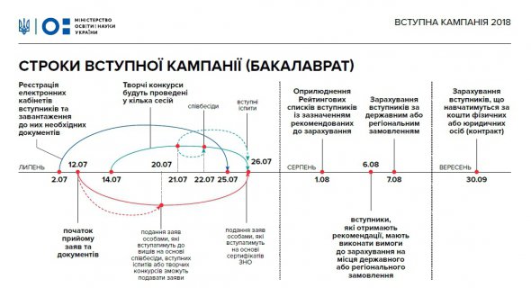 З 2 по 25 липня абітурієнти повинні зареєструвати електронні кабінети. З 12 по 26 липня подати документи для вступу у вищі навчальні заклади.