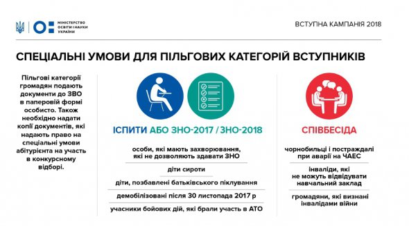 "Ці вступники не складають ЗНО. Їм треба пройти лише державну підсумкову атестацію з української мови і літератури та історії України. Скласти вступний іспит або пройти творчий конкурс", - каже заступника міністра освіти Юрій Рашкевич.