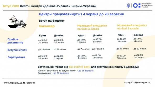 Абітурієнти з окупованого Донбасу і Криму можуть вступати до українських вузів через освітні центри. Вони працюють з 4 червня. До центру "Крим-Україна" належать 35 вищих навчальних закладів. До "Донбас-Україна" – 22.