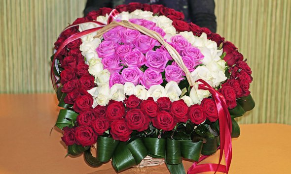 Не поступаються в популярності величезні букети зі 101 троянди. Їх вибирають чоловіки, які хочуть по-справжньому вразити дівчину. Кожна представниця прекрасної статі напевно мріє саме про такий букет. Незважаючи на весь шик такої квіткової композиції, вона стала справжньою класикою.