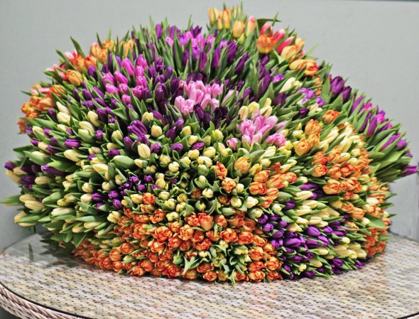 Найпопулярніші весняні квіти - тюльпани та іриси. Цікаве поєднання обох варіантів. Це додає шарму. Звичайно, коли ви будете купувати у перекупників, ніхто не буде турбуватися про свіжість. А тут їх найчастіше ставлять в спеціальні кошики і постійно подають воду. Свіжими квітами прикрашаємо ресторани, кафе або урочисті події киян. Вже не раз переконувалася, що вигідніше замовляти саме тут. Оскільки вони вирощені в особливих умовах і стоять довше", - каже флорист Ірина Саненко.
