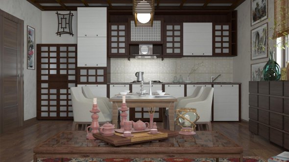 Кухонна кімната в японському стилі - це ідеальне поєднання функціональності та естетики. Японський стиль відрізняється чистотою ліній, мінімалістичним дизайном та спрощенням деталей. Така кухня може стати не лише місцем приготування їжі, але і додатковим інтер'єрним акцентом.