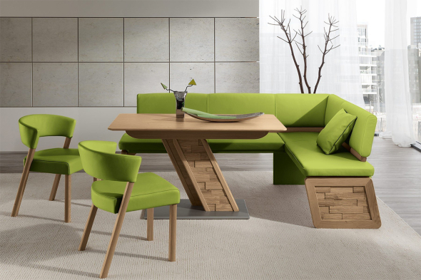 Третє - оббивка. Важливо правильно підібрати тип текстилю, адже кухня - це місце, де важко уникнути забруднень, жиру і рідини. Хорошими варіантами є рогожка (зовні схожа на мішковину), водонепроникний велюр, екошкіра.