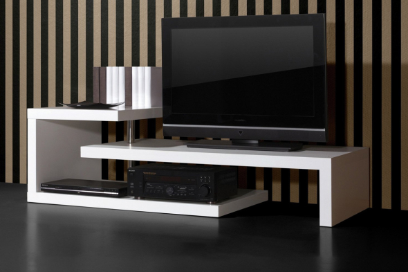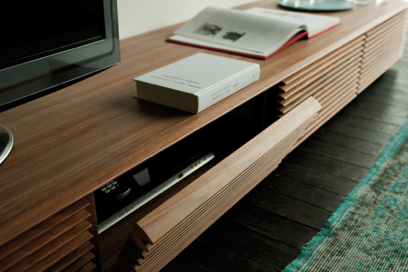 ○ ТВ-тумба з масиву дерева виглядає дорого і солідно. Тверді породи деревини (бук, дуб) витримують інтенсивне використання, велику вагу і слугують понад 30 років.